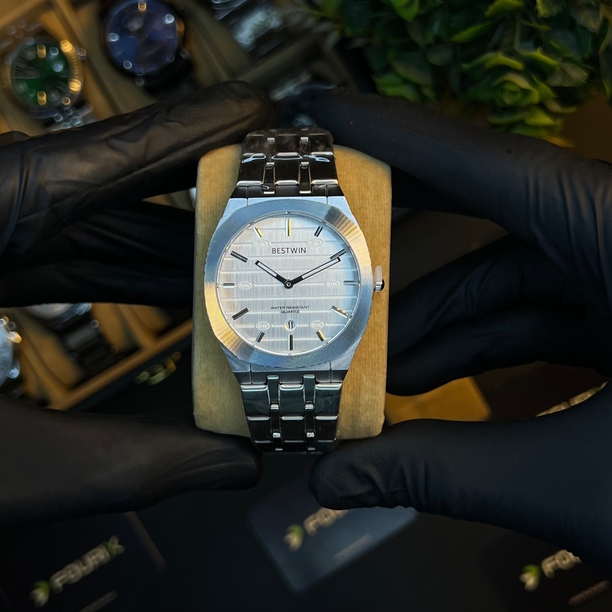 Bestwin brand quartz wristwatch featuring a stainless steel and textured Silver Dial ⌚️✨