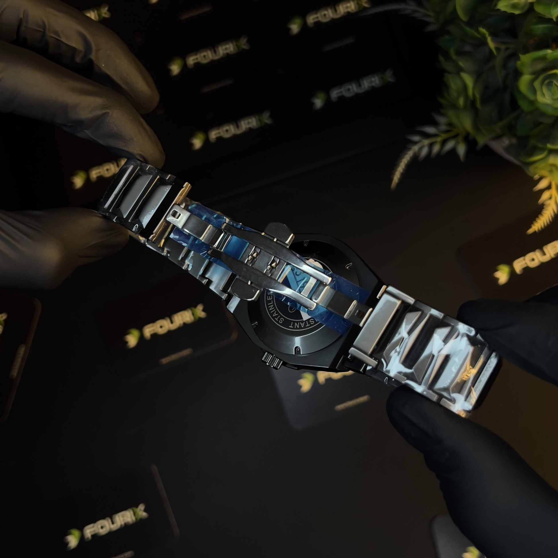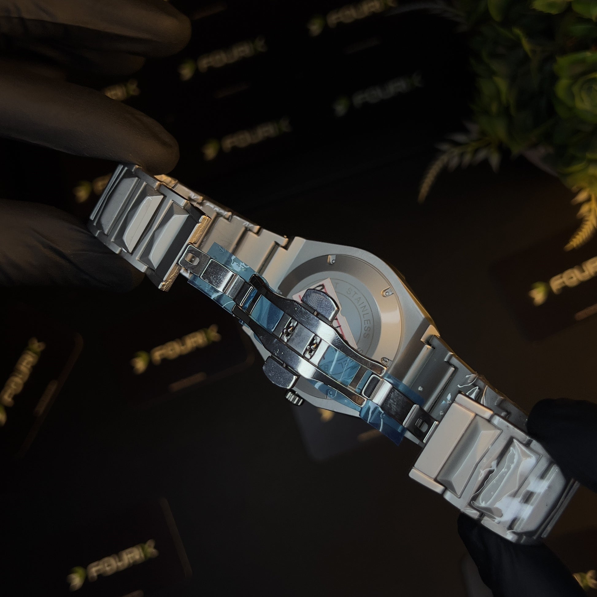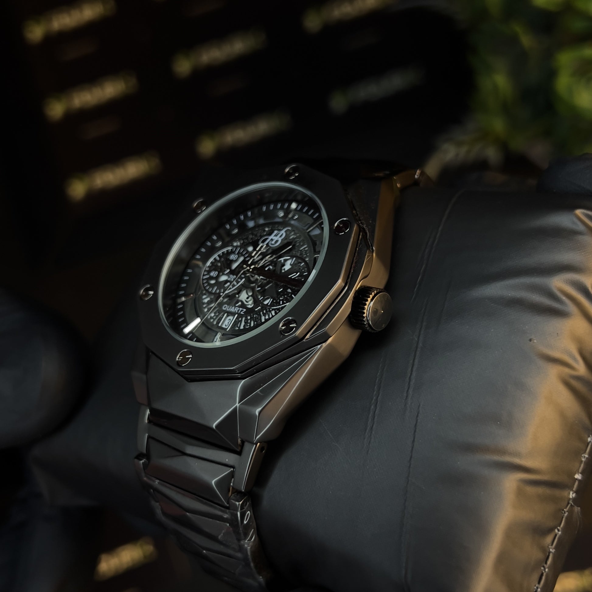 The Hublot Diamond Cut Chain Watch for men comes with a premium design and stylish chain strap. It shows clear date and time, is strong, comfortable to wear, and perfect for daily use or special occasions